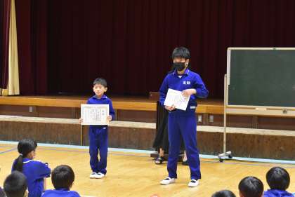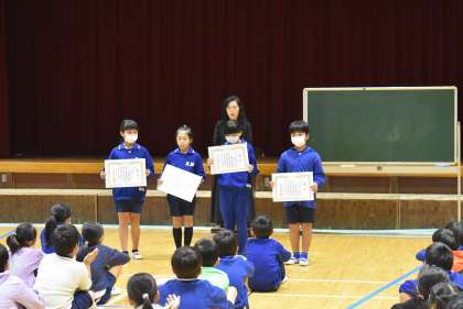 前期終業式 表彰 公開日 2023/10/06 更新日 2023/10/06 学校行事 また、作文や詩、読書感想文で優秀な成績をおさめた子の表彰も行いました。とてもよくがんばりました。おめでとうございました。