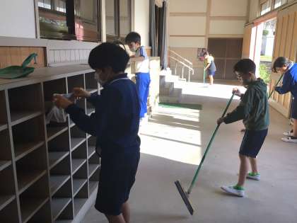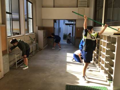 学芸会 準備会 3 公開日 2023/10/13 更新日 2023/10/13 学校行事 講堂の入り口も、お客さんを迎えるためにぴかぴかにしています。靴箱の中の雑巾がけまで気づいて、動いている子もいました。