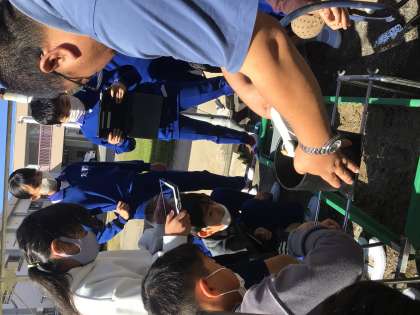 10月17日(火)、理科の実験です。流水実験器を使い、水が流れていく様子を観察しました。あとで、みんなで検証できるよう、撮影もしています。