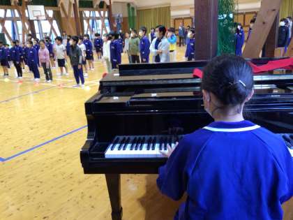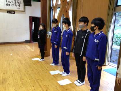 初めてとは思えない、落ち着いた司会で、朝会を進行していました。今日は、学芸会でのみんなの素晴らしいがんばりをあらためて伝えるとともに、これからも楽しく一生懸命がんばろうとお話しました。そして、まずはやっぱりあいさつからと言うことで、いろいろなあいさつを誕生月毎に元気に言ってみました。