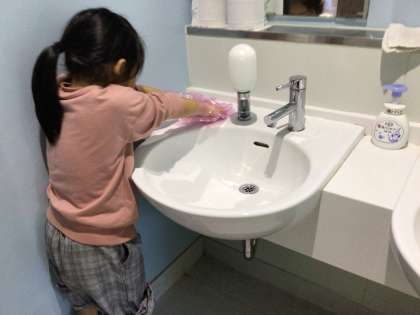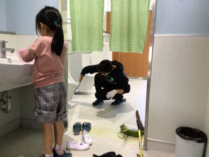 10月23日(月)、今日は2階男子トイレを掃除していただきました。かわいいお手伝いさんも一緒にお掃除してくれました。大切に使っていきます。ありがとうございました。