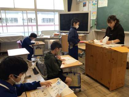 5年生 スキルタイム テストが・・・ 公開日 2023/10/25 更新日 2023/10/25 各学年から 10月25日(水)、5年生のスキルタイムはテスト返しです。 どきどきして返してもらうと、すぐに間違えたところを直していきます。すぐ漢字ドリルを出して確認し、ちょっとだけ違ったことに気がついて悔しがったり、「社会の教科書見ていいですか」と聞いて、自分で答えを探したりしていました。間違えたからこそ、次にはできるように学んでいけるといいですね。