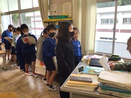 3年生 スキルタイム 暗唱 公開日 2023/10/25 更新日 2023/10/25 各学年から 10月25日(水)、3年生は国語の教科書の詩や俳句の暗唱に挑戦していました。暗唱できたら、先生に一人ずつ聞いてもらいます。長いのは、「赤とんぼ」。「夕焼け小焼けの赤とんぼ〜」を4番まで、しっかり暗唱していました。今ではなかなか使わない言葉もあるのでむずかしいですが、どんどん並んでチャレンジする意欲がすばらしいです。