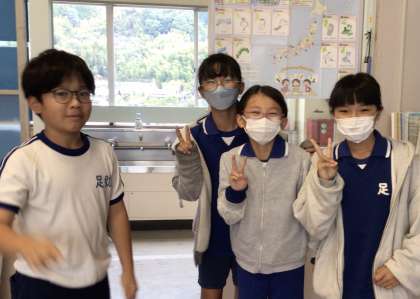 4年生 あいさつ隊 公開日 2023/10/25 更新日 2023/10/25 各学年から 10月25日(水)の朝、4年生の子たちが、いろいろな教室を回って、朝のあいさつをしていたそうです。残念ながら、そのときには出会えなかったので、後で記念写真を撮りました。 朝からみんなに元気を届けてくれて、ありがとう。