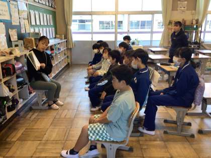 10月26日(木)、朝の活動は読み聞かせです。読書の秋にふさわしい朝の風景です。