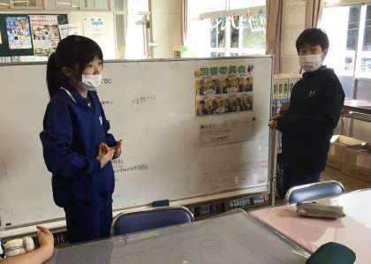 素敵なキャッチフレーズを考えた図書委員会。みんなで声をそろえて、言っていました。