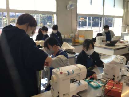 10月31日(火)、6年生は家庭科でナップサック作りをしています。