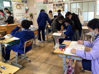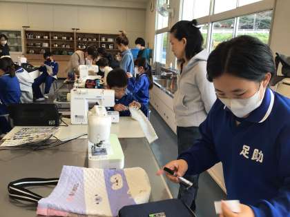 授業公開日 6年生 公開日 2023/11/07 更新日 2023/11/07 学校行事 6年生の算数の学習では、友達同士で教え合い解決していました。家庭科のナップサック作りでは、ボランティアさんの力をお借りして、完成できました。