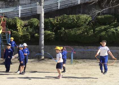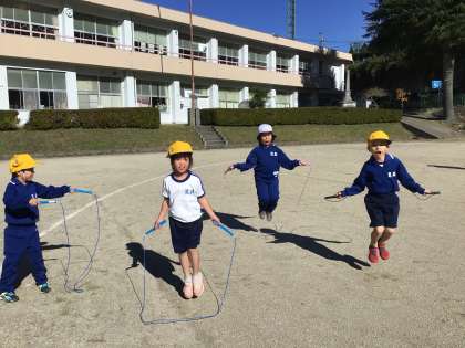 あすっこタイムでは、縄跳びを頑張っている姿もありました。かけあし跳びでトラックを走っている子を追いかけている子もいました。