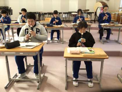 6年生 音楽 マルセリーノの歌 公開日 2023/11/15 更新日 2023/11/15 各学年から 11月15日(水)、6年生はリコーダーに二重奏に取り組んでいます。二つのパートを練習し、それぞれ好きなパートを選んで合わせました。響き合うと、とても美しいです。