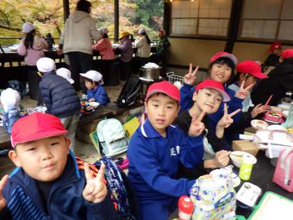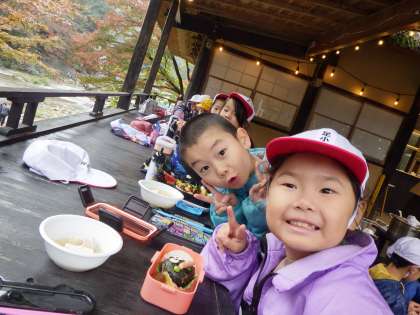 11月17日(金)、1・2年生が香嵐渓に出かけました。朝から雨が降っていたので心配しましたが、昼ごろには雨が上がり、出かけることができました。