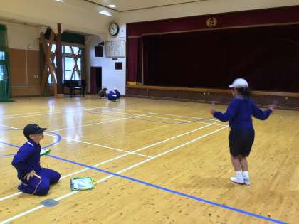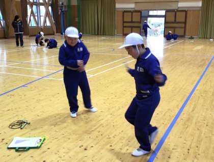 2年生 縄跳び 公開日 2023/11/20 更新日 2023/11/20 各学年から 11月20日(月)、2年生は、講堂でペアになって縄跳びの練習をしていました。何回跳べたか、お互いに数え合います。1回旋2跳躍から、1回旋1跳躍になるように練習しています。