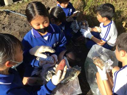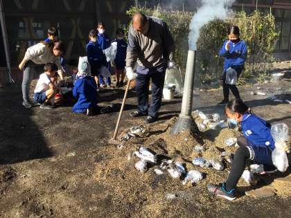 3年生の焼き芋もおいしく出来上がりました。順番に選んでいきます。 蜜いっぱいのお芋です。