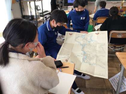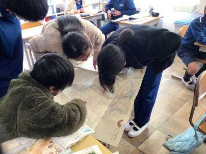 この日は、伊能忠敬の日本地図を順番に見ていました。よく見てみると「足助」の文字が。足助の長い歴史を改めて感じる時間になりました。