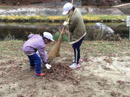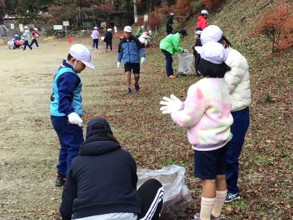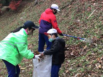 もみじの落ち葉を集めた袋は、あっという間にいっぱいになります。