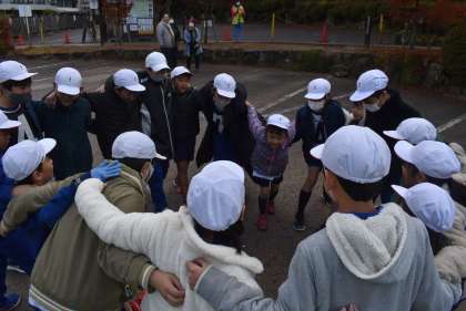 そして、4色に分かれて円陣を組み、気合いを入れてスタートです。