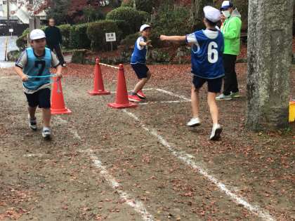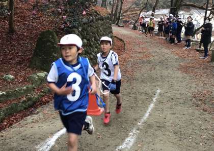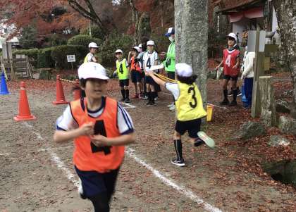 もみじの道を走る子どもたちに、たくさんの応援の声が響きます。