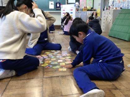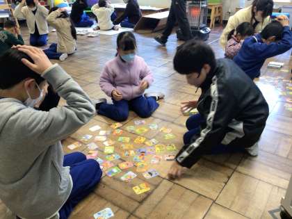 おしゃべりタイム カルタ 1 公開日 2023/12/08 更新日 2023/12/08 学校の特色ある活動 12月9日(金)の朝は、おしゃべりタイムからスタートしました。 ことわざ、漢字などのカルタを取り合いました。
