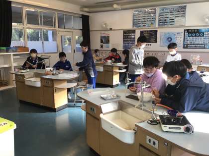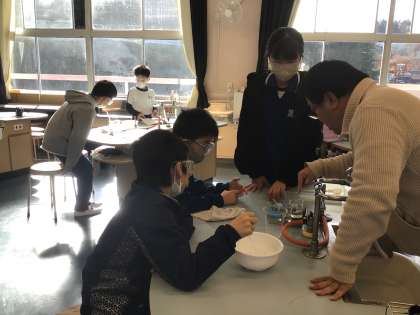 一度水に溶けた食塩やミョウバンを取り出せるかの実験です。冷やしてみたり、熱してみたりしながら、熱心に観察していました。