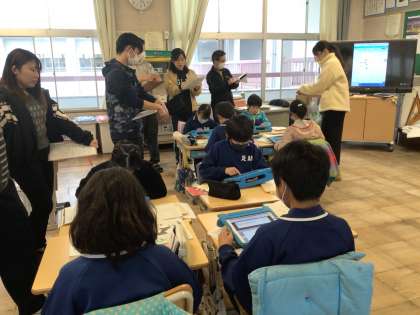 3年生 授業研究 国語科「そうぞうしたことを伝え合おう」2 公開日 2023/12/12 更新日 2023/12/12 各学年から 後半は、グループで話し合いながら、意見をまとめました。一人一人が自分の考えについて理由も明らかにしながら、息の長い発言をしていました。友達の考え方との違いを感じながら、自分の考えを広げたり、深めたりすることができました。