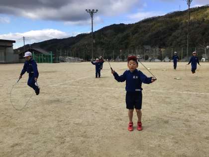 1・2年生 体育 縄跳び 公開日 2023/12/20 更新日 2023/12/20 各学年から 12月20日(水)体育の学習で、縄跳び練習に取り組んでいます。2月1日に、体育委員会の企画・運営で行われる縄跳び大会に向けて、がんばっています。