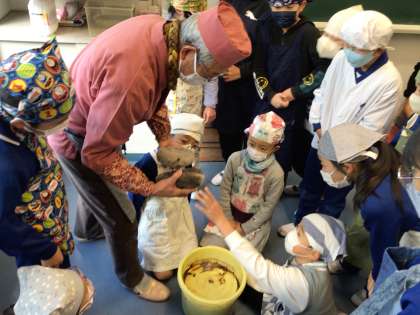 12月21日(木)、地域講師の方に来ていただき、4年生が五平餅作りを行いました。