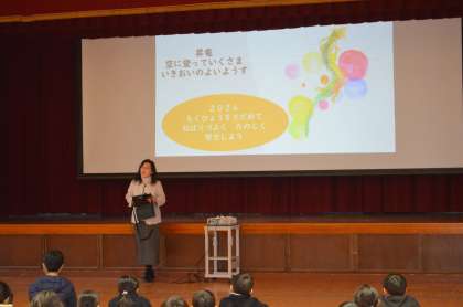 校長からのお話では、能登半島地震について話し、今、学校で顔が合わせられることが当たり前ではないこと、だからこそ日々の生活を大切にしたいことを伝えました。