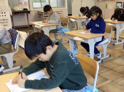 2年生は、落ち着いた雰囲気の中、一人一人が真剣な顔で文字と向き合っていました。