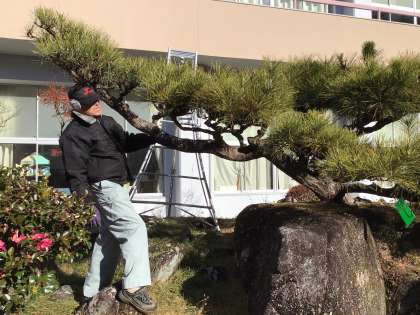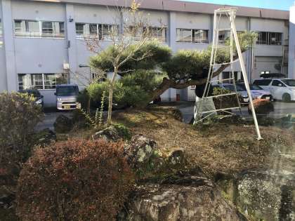 松の剪定 公開日 2024/01/09 更新日 2024/01/09 校長室から 12月に引き続き、1年生教室前の松を剪定していただいています。一本一本様子を見ながら、取っていく、根気のいる作業です。ありがとうございます。
