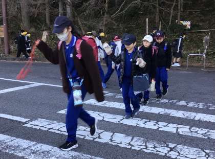 2024スタート 登校風景 3 公開日 2024/01/10 更新日 2024/01/10 校長室から 1月10日(水)の登校風景です。朝は、今日も厳しい寒さでした。中学校や足助グランドから来る道は、ずっと日陰になるので、より寒く感じます。