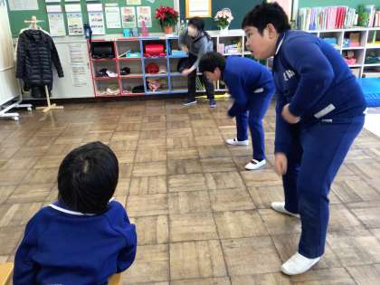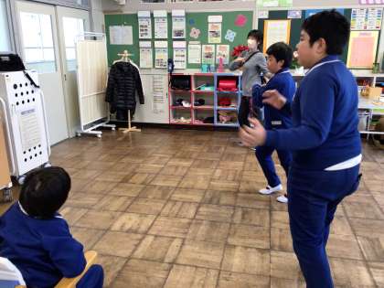 わくわく1学級 レッツ エクソサイズ 公開日 2024/01/10 更新日 2024/01/10 各学年から 1月10日(水)、わくわく1学級は、自立活動で画面を見て、エクソサイズに取り組んでいました。お手本と同じ動きをするのは大変でしたが、とてもがんばっていて感心しました。