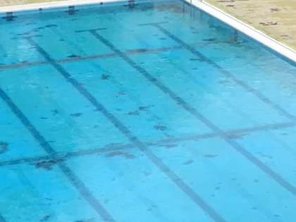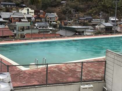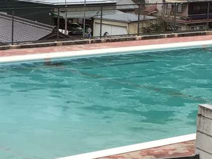 1月12日(金)の朝です。プールはすっかり凍っています。ばりばりです。中学校のプールも凍っていました。寒い朝が続いています。