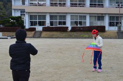 1月12日(金)、わくわく学級の凧揚げの様子です。残念ながら、風が止んでしまい、ちょっぴり苦戦しながらの凧揚げでした。