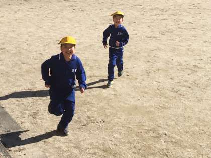 1月17日(水)、1年生はハンターごっこを始めました。なかなか捕まらなかったので、4年生が仲間入りしてハンターになってくれました。