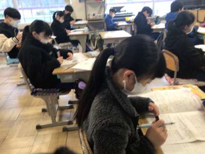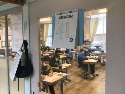 6年生 残りの時間 公開日 2024/01/18 更新日 2024/01/18 各学年から 1月18日(木)、6年生教室のドアには数字が掲示されています。残りの登校日を一人一人がかいて、カウントダウンしているのです。今日の数字は「41」。小学校で過ごす残りの時間をかみしめながら、学習のまとめや卒業までの取組を進めています。