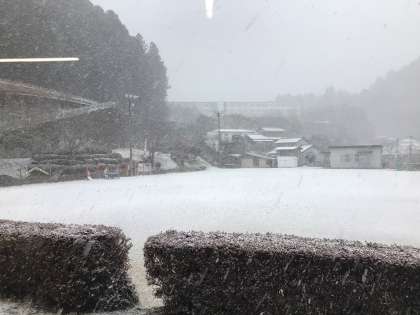 雪 2 公開日 2024/01/24 更新日 2024/01/24 校長室から 雪の中でも、遠くから元気な「おはようございます」が聞こえてきます。 登校後、雪はさらに強く降り出して、運動場は真っ白になりました。