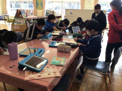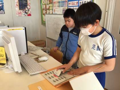 図書委員会は、みんなが楽しめる塗り絵を作っています。返し忘れのチェックもしています。
