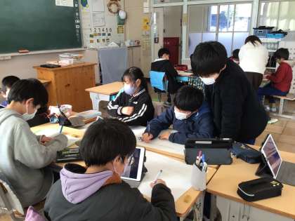 2月2日(金)、5年生は香嵐渓の植樹のときに行う発表に向けて、準備中です。協力して、一生懸命まとめています。発表は、14日です。かなり迫ってきました。