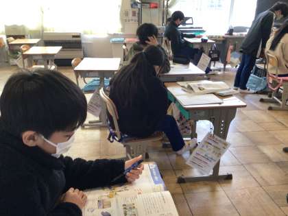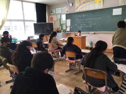 2月6日(火)、6年生の家庭科では冬を快適に過ごす方法を考えていました。今すぐ役立つ学習です。