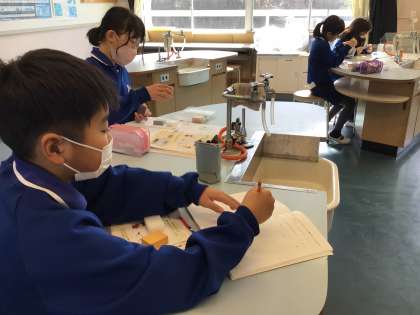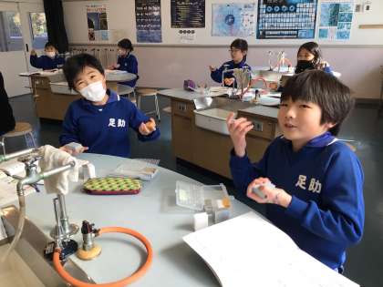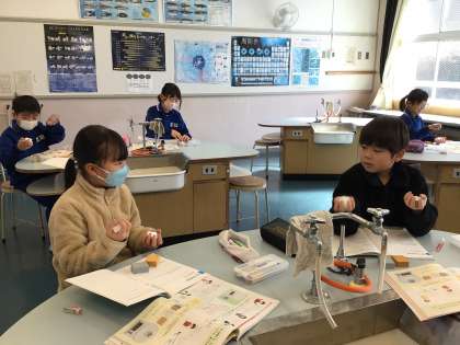3年生 理科 ものの重さ 公開日 2024/02/08 更新日 2024/02/08 各学年から 2月8日(木)、3年生の理科はものの重さの実験です。同じ体積の違う材料を比較します。両手で持って比べて、どっちかなあと考えている子どもたちです。