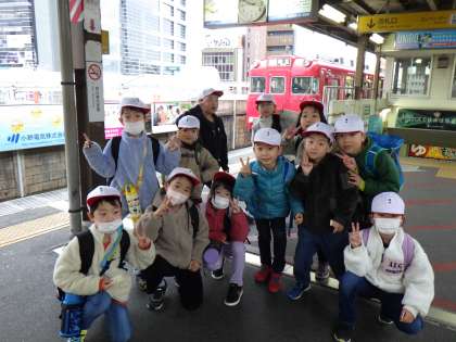 1年生 校外学習 1 公開日 2024/02/21 更新日 2024/02/21 各学年から 2月21日(水)、1年生が豊田市駅周辺に校外学習に出かけました。 あいにくの雨でしたが、自分で切符を買って電車に乗り、駅の周りを楽しみました。