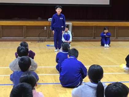 全校集会 代表スピーチ 1 公開日 2024/02/26 更新日 2024/02/26 学校の特色ある活動 2月26日(月)、今年度最後の全校スピーチでした。各組の代表が、「今年一番心に残ったこと」を発表しました。学芸会のこと、新型コロナにかかったこと、校外学習のこと、キャンプのことなど、心に残った出来事について、詳しく話していました。