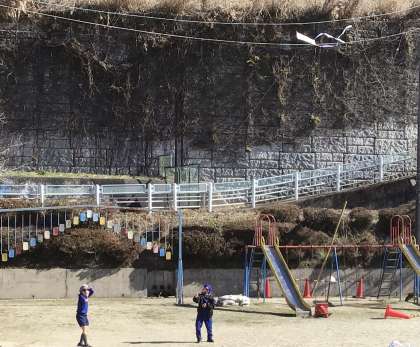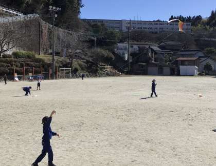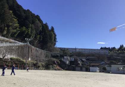 2月26日(月)、強風の中、2年生が3度目の凧揚げです。今日の風は強すぎるくらいでしたが、風をとらえて高く上がる凧に大騒ぎの子どもたちでした。