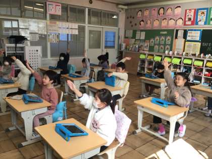 1年生 算数 100までの計算 公開日 2024/02/27 更新日 2024/02/27 各学年から 2月27日(火)、1年生の算数は100までのかずの学習です。 それぞれのタブレットで問題を考えていきます。手を挙げるのもぴんぴん、聞く姿勢もとても素敵です。もうすぐ2年生です。