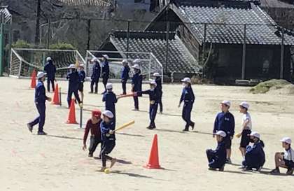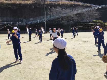 2月28日(水)、3・4年生の体育は大谷グローブも使って、ボールをキャッチしたり、ティーバッティングしたりしました。グローブを使うのは、なかなか難しかったのですが、柔らかいボールを素手で打って受ける練習を重ねていくと、キャッチする回数も増えてきました。