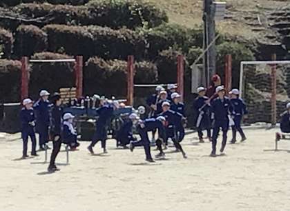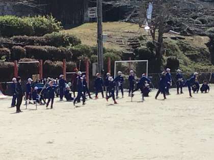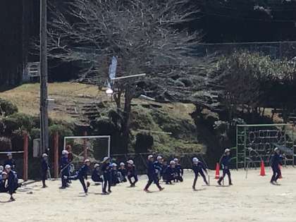 2月28日(水)、5・6年生の体育は長い棒を使って、投げる動作を学んでいました。やり投げように、まっすぐ飛ぶととても気持ちよさそうでした。