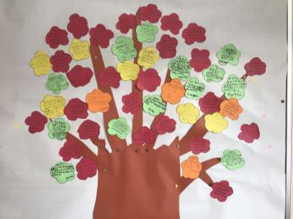 運営委員会 いいところを見つけよう 公開日 2024/03/04 更新日 2024/03/04 各学年から 3月4日(月)、運営委員会の最後の企画「いいところを見つけよう」が始まりました。友達のいいところを書いて、廊下のボックスに入れると運営委員会さんが、玄関の木に貼ります。今日から始まりましたが、もうこんなに花が咲きました。