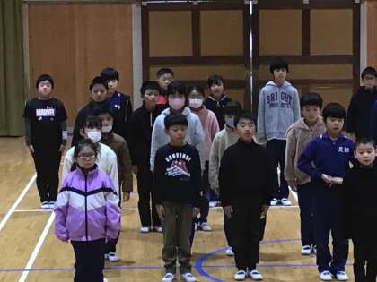 在校生 思い出の詩 公開日 2024/03/05 更新日 2024/03/05 学校行事 3月5日(火)、あすっこタイムに在校生の代表が「思い出の詩」を1回目の練習をしました。 いい緊張感の下、初めてとは思えない堂々とした、大きな声が講堂に響きました。今日、最後に指導されたポイントは、スピードと語尾を伸ばさないことでした。練習終わりの「ありがとうございました」の挨拶は、早速変わっていました。すぐ学べる子たちの「思い出の詩」は6年生の心にどのように届くでしょうか。
