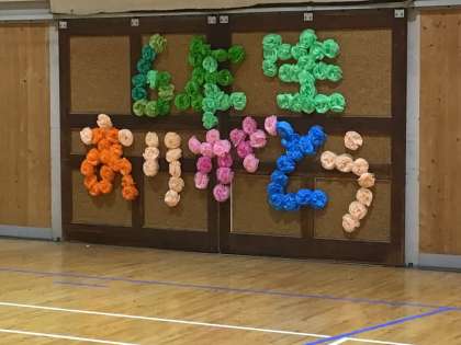 会場は、いろいろな学年が心を込めて準備した装飾で飾られています。