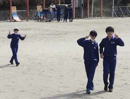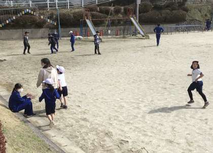 6年生は、1年生と一緒に「逃走中」で遊んでいます。